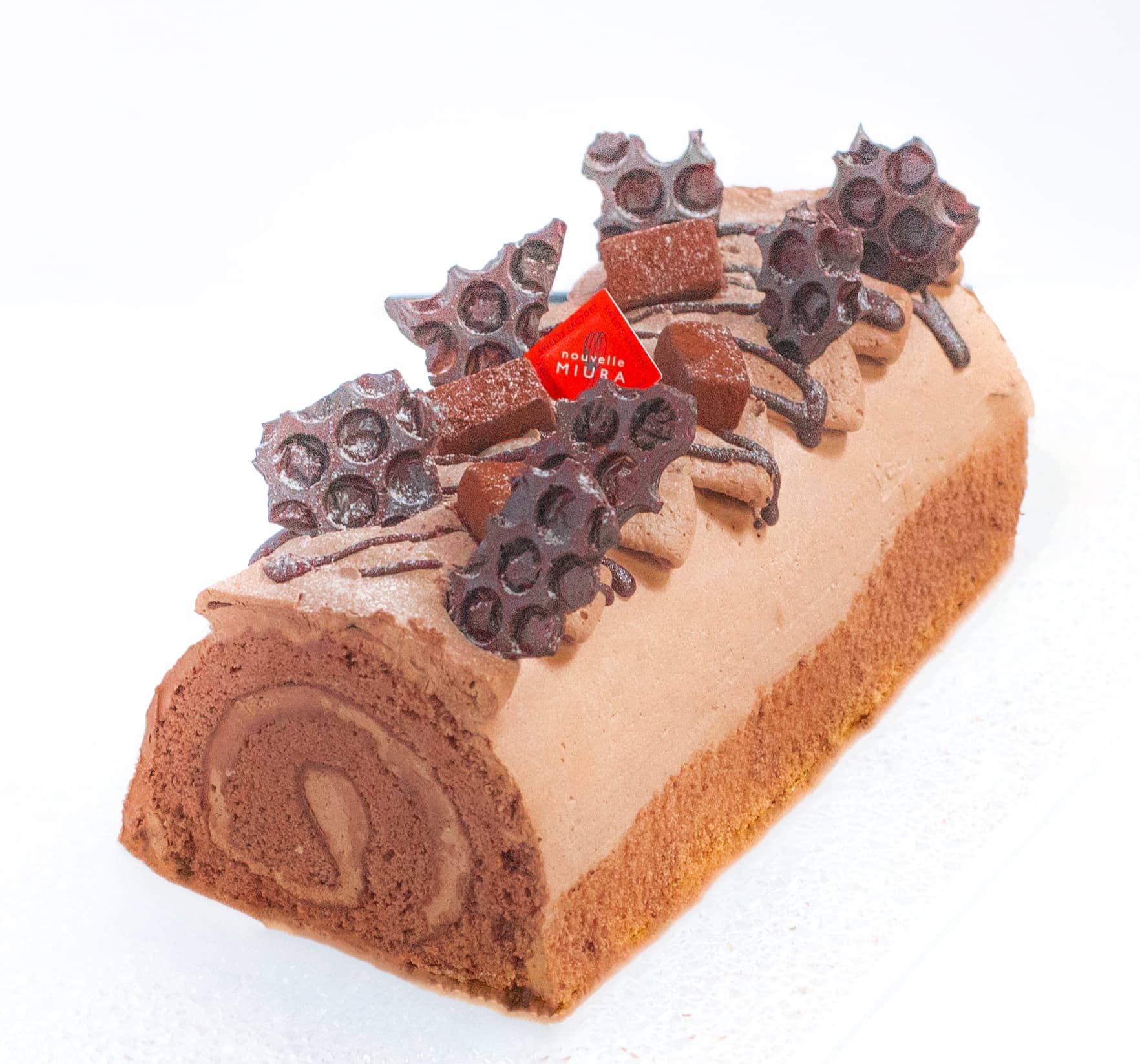 濃厚なチョコレートクリームをココアスポンジで巻きました。